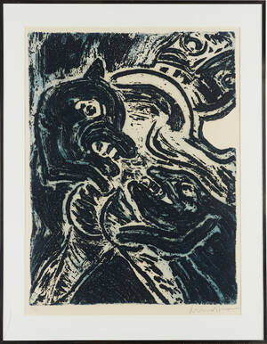 BENGT LINDSTRÖM (1925-2008), Komposition med djur, signerad samt numrerad 75/90, litografi, bildmått ca 82x61 cm. Pappret buckligt.