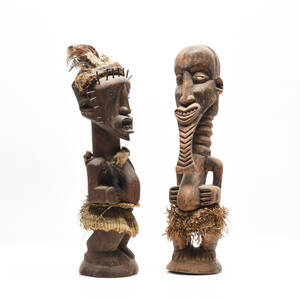 SKULPTURER, ett par, 1900-tal, troligen Afrika, trä, höjder ca 41 cm. Slitage.