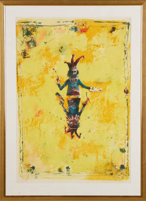 BENGT LANDIN (född 1933): färglitografi, motiv med narr, signerad och daterad Bengt Landin 1973, 25/75, bildmått ca 87x60 cm. Ej examinerad ur ram.