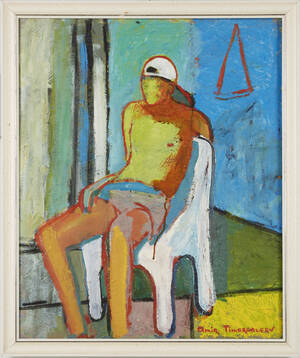 AMIR TIMERGALEEV (Ryssland, f. 1955): sittande man på stol, signerad, olja på duk, ca 65x54 cm . 851161.