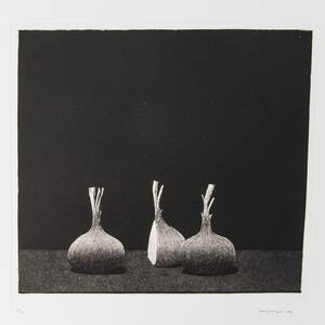 Pentti Kaskipuro, "Tre lökar" Signerad Pentti Kaskipuro och numrerad 31/50. Torrnål och akvatint, 2008. Plåtstorlek 19,5 x 21 cm. Ej examinerad ur ram. Läs mer...