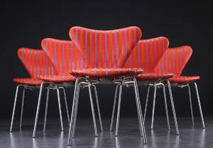 Arne Jacobsen. Sæt på seks stole 'syveren' , mod...