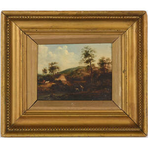 OIDENTIFIERAD KONSTNÄR (18/1900-tal): Landskapsmotiv, olja på pannå, ca 12x16 cm. 760952.