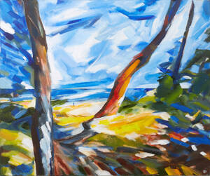 ANITA FRÖDING (född 1942): "Strand och skog - Ett poem", monogramsignerad, olja på duk, 100 x 120 cm. 750207.