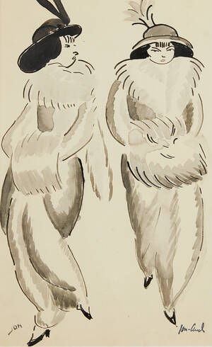 JOHN JON-AND (1889-1941): Ny päls, signerad JON samt stämpelsignerad jon-and, tusch på papper, 31x19 cm. 725389.