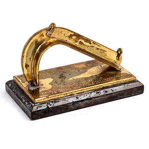 MINNESSKULPTUR, ankare monterat på sockel, märkt ´Till Olof Juthe på 50-årsdagen från fartygschefer på "Atle" och "Ymer", 1927-1939. Slitage.