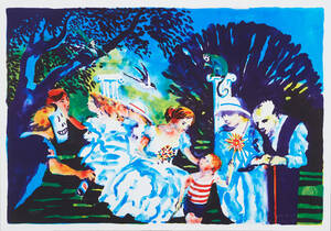 PETER DAHL (född 1934): "Afton i parken", signerad samt 492/1500, färglitografi, bladmått ca 64x91 cm. Oramat blad.