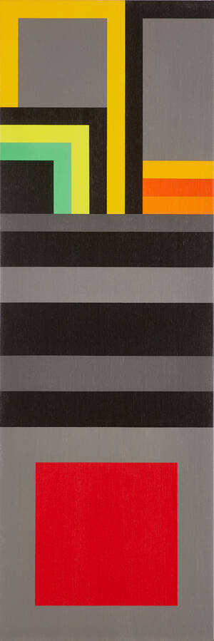 JOHN-ERIK GÖRANSSON (1933-2018), "Filing 1877. B", signerad John-Erik Göransson på baksidan, akryl på duk uppfodrad på pannå, ca 72x24 cm. 674203.