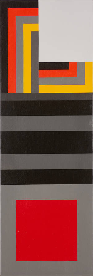 JOHN-ERIK GÖRANSSON (1933-2018), "Filing 1769. B", signerad John-Erik Göransson på baksidan, akryl på duk uppfodrad på pannå, ca 72x24 cm. 674161.