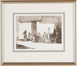 PETER DAHL (1934-2019): Figurscen, ej signerad, daterad 1993, färglitografi, bladstorlek ca 22x30 cm. Ej examinerad ur ramen.
