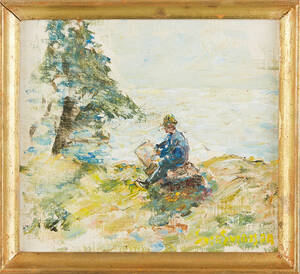 SVEN SVENSSON (1906-1999): "Knstnären målar havet", signerad Sven Svensson, olja på pannå, ca 20x22 cm. 649194.