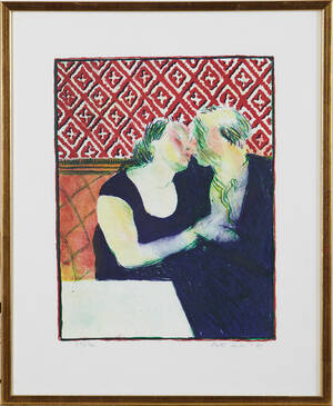 PETER DAHL (född 1934): Kyssande par, signerad och daterad Peter Dahl -78, färglitografi, 398/460, bildmått ca 37x27 cm. 645068.