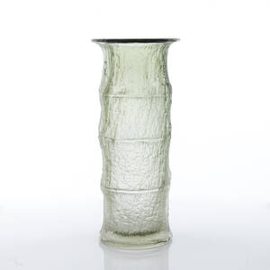 Timo Sarpaneva 1926-2006 Vas i gröntonat glas ur "Finlandia"-serien, Iittala Signerad: Timo Sarpaneva 3351 Höjd: 18 cm Konditionsrapport: Mindre nagg i övriga kant, åldersbaserat slitage, Läs mer...