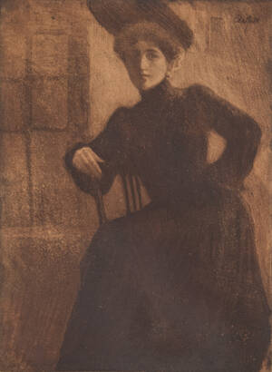 Albert Edelfelt, etsning, signerad A. Edelfelt i plåten. "Ung dam i promenaddräkt". Sannolikt utförd i Paris 1903. Plåtstorlek ca. 23 x 17 cm. Gulnad. Mjukt Läs mer...