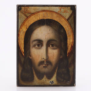 IKON, Ryssland, 1800-tal, messias, tempera och olja på träpannå, rizza i mässing, ca 27 x 22 cm. Sedvanligt åldersrelaterat slitage, krackelyr, bristningar. Läs mer...