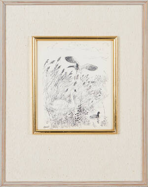 HARALD WIBERG (1908-1968): Orrar, signerad och daterad Harald Wiberg 1953, tusch och blyerts, ca 12x12 cm. 768311. Läs mer...