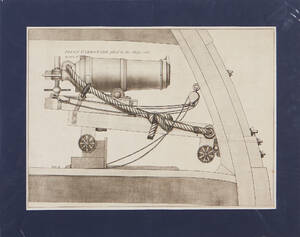 KANON. TUSCHLAVERING, "Joint Carronade", troligen tidigt 1800-tal, ca 615x440 mm. I passepartout. Några småfläckar.