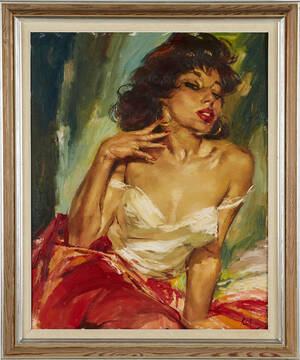 Charles Roka (1912-1999), Ungern. Modell. Olja på duk, Signerad, 80x64, yttermått inklusive ram: 87x72 cm. Charles Roka, (på Ungerska: Károly Róka), född 1912, död 1999, Läs mer...