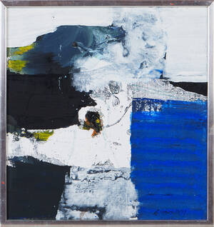 Gunnar Johnsson (1917-2007), Sverige. Komposition. Signerad. Olja på pannå, yttermått inklusive ram: 31x24 cm. Gunnar Johnsson, svensk bildkonstnär född 1917 i Malmö, död 2007 i Läs mer...