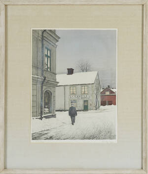 Reinhold Ljunggren (1920-2006), Sverige. Signerad, numrerad 133/310. Färglitografi, bildmått: 32x43 cm, yttermått inklusive ram: 48x59 cm. Reinhold Ljunggren, född 1920 i Vittaryd, död 2006, svensk Läs mer...