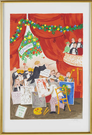 LENNART JIRLOW (född 1936): ´´Teatermålaren´´, signerad L Jirlow, numrerad 437/450, blindstämpel idem paris, färglitografi, bildstorlek ca 73x49 cm. Ej examinerad ur ramen.