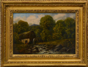 OIDENTIFIERAD KONSTNÄR (England, 1800-tal): Landskap med kvarn vid fors, signerad Nieman, daterad 1878, olja på pannå, ca 21x30,5 cm. 543675.