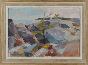 Sven Olof Rosén (1908-1982), Sverige. Skärgård. Signerad, daterad -53. Olja på duk, 38x60 cm, yttermått inklusive ram: 53x76 cm. Sven Olof Rosén, svensk målare och Läs mer...