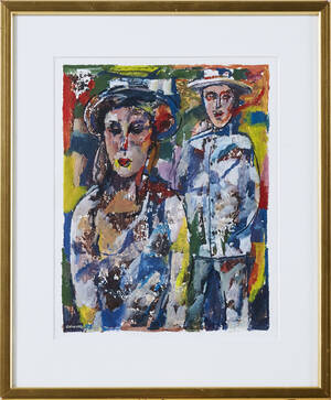 MAHMUD CAWIAN (född 1951): Figurkomposition, signerad Cawian, daterad 97, akryl på papper, bildyta 30x24 cm . 526701.