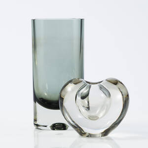 KAJ FRANCK, vaser (3), glas, Nuutajärvi/Notsjö samt IIttala, Notsjö modell 296 med tonat glas signerad -65 samt modell 106 i klarglas signerad -53, vas i Läs mer...