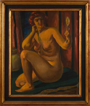 GEORG PAULI (1855-1935): modellstudie, olja på pannå, signerad samt signerad G. Pauli a tergo, mått ca 50x34 cm. Färgbortfall, ett hål från tidigare inramning i Läs mer...