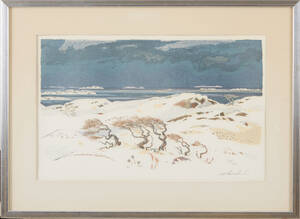 ROLAND SVENSSON (1910-2003): "Trettondagsvinter", signerad Roland S, färglitografi, 190/200, bildmått ca 31x53 cm. 498342.