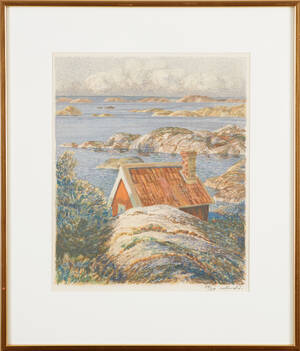 Roland Svensson (1910-2003), Sverige. Kust. Signerad, numrerad 241/360. Färglitografi, bildmått: 29x46, yttermått inklusive ram. 45x60 cm. Roland Svensson, född 1910 i Stockholm, död 2003, svensk Läs mer...