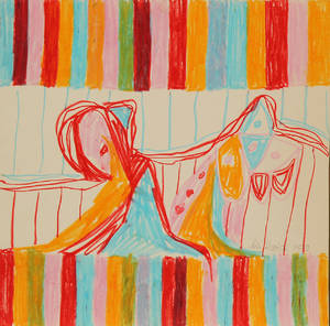 Lis Zwick, tegning/akvarel på papir, figurkomposi...