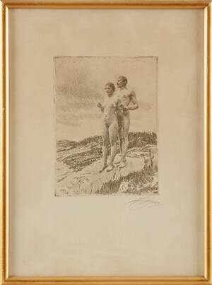Anders Zorn, Zorn, "De två". Etsning, 1916, signerad med blyerts. P. 19,6 x 14,6 cm. Ej examinerad ur ram. Något gulnad. Läs mer...
