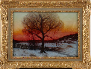 EDVARD ROSENBERG (1858-1934): Aftonrodnad över bäck, signerad Edv. Rosenberg 1923, olja på duk, ca 62x95 cm. 660194. Läs mer...