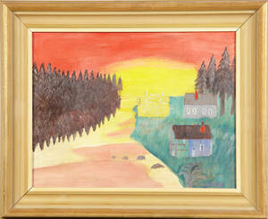 Primus Mortimer Pettersson, olja på pannå, signerad Primus. Skymning. 30 x 30 cm. Läs mer...