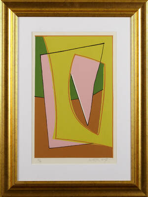 Färglitografi, geometrisk komposition. Signerad och numrerad. Inramad. (49,5x37) Läs mer...