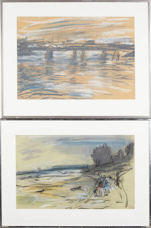 KROLIKOWSKI, Jeremi T(Polen, samtida) (2), Motiv från Gdansk/Polen och Svarta havet/Rumänien, en signerad och daterade 1983, en betitlad atergo, pasteller, 33x47 resp 30x48 cm. 104747.