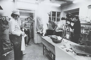 Carl Johan De Geer, fotografi, signerat 16/30. "Carl Johan De Geer under inspelningen av Tårtan". P. 29 x 43 cm. Ej examinerad ur ram. Läs mer...