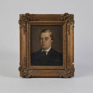 1800-tal, porträtt, ej signerad. Olja på pannå, 17x14 cm, yttermått inklusive ram: 27x24 cm.