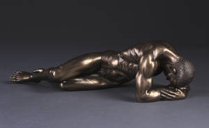 Ubekendt kunstner. Mandeskulptur. Liggende mand. 21. årh. Støbt i resin med bronzefinish. L. 36 cm. Mrk. Veronese