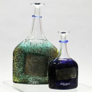 Kjell Engman, glasflaskor, 2 st, H=17,5 och mindre, signerade