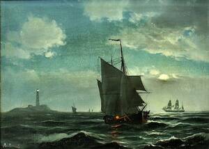 Marinmålning, olja på pannå, oidentifierad konstnär, 79 X 52 cm Läs mer...