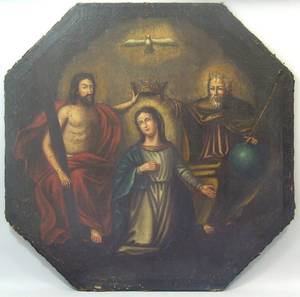 Avslutade auktioner liknande Ubekendt kunstner, 'Marias kroning', oktogonalt oliemaleri
