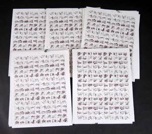 Nordkorea, Michel nr. 3765-69,3773-77 og 3779-93 i sammentrykte helark, ialt 500 stemplede ark. Michel katalogværdi ca. 150.000,- Euro. (=1.100.000 d. kr.)