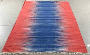Modern indisk kelim, 302 x 218 cm. Flatvävd matta i ull och bomull. Ställvis små skador med synlig varp. Läs mer...