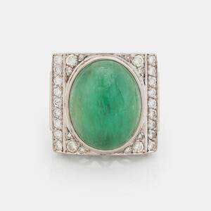 Ring 18K vitguld med en cabochonslipade smaragd sa...