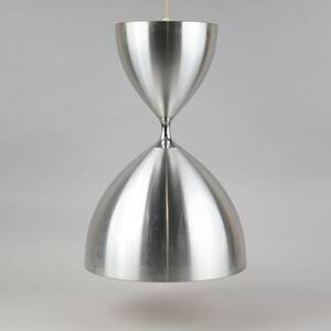 Taklampa i bortsad aluminium, modell Dikus. Formgiven av Jo Hammerborg. Framställd av Fog & Mørup. Ø 47 cm.