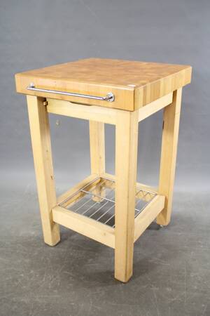 Trä. Hårt slitage, sprickor, hack, nötningar. (Höjd 80, 61x51) Läs mer...