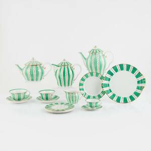 Wilhelm Kåge, kaffe- och teservis, 43 delar, porslin, "Grön Slinga", Gustavsberg Dekor av gröna ränder och förgyllning. 9 moccakoppar med fat, diameter 8,5-11,5 cm (2 Läs mer...